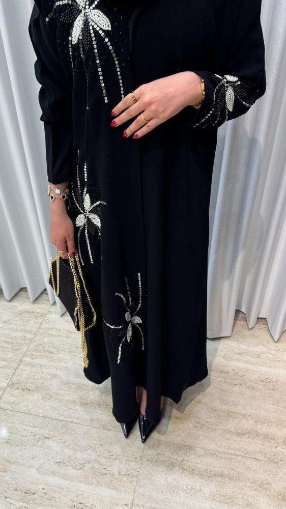 القماش الكريب الملكي يعطي لمسة فخمة، والقصة النص كلوش توفر لك الراحة والانسيابية بكل سهولة وتطريزها الابيض تاخد العقل❤️🔥.
