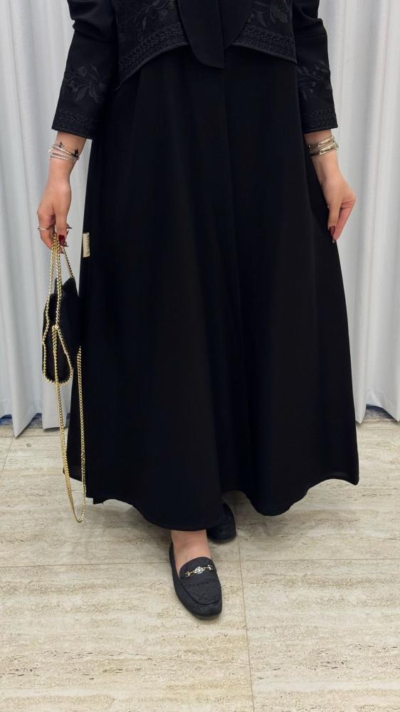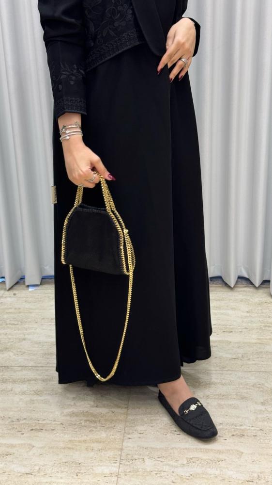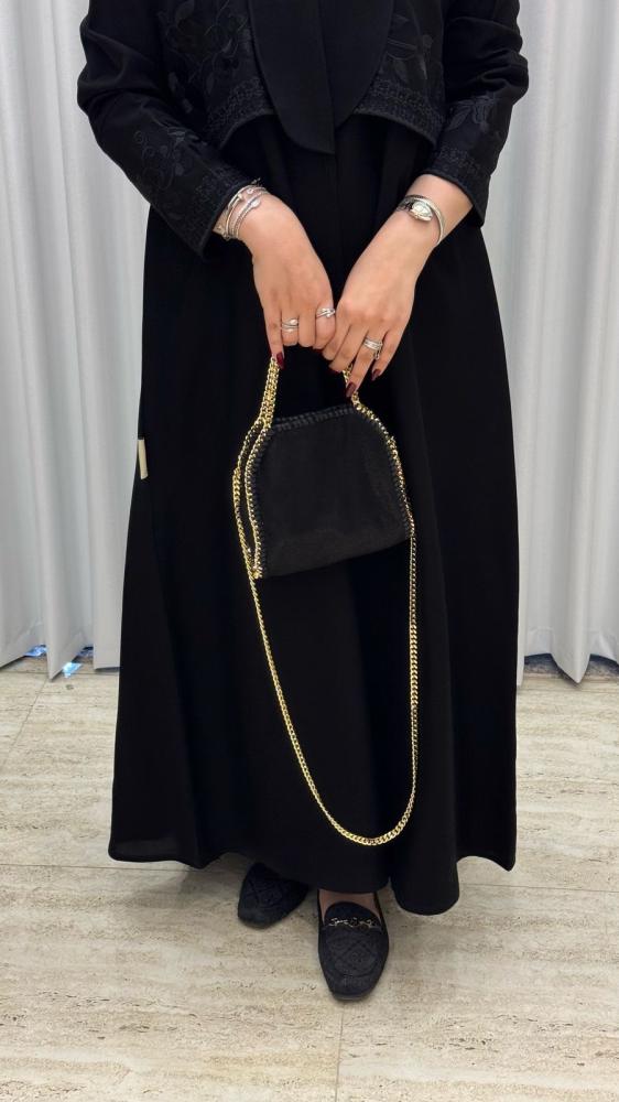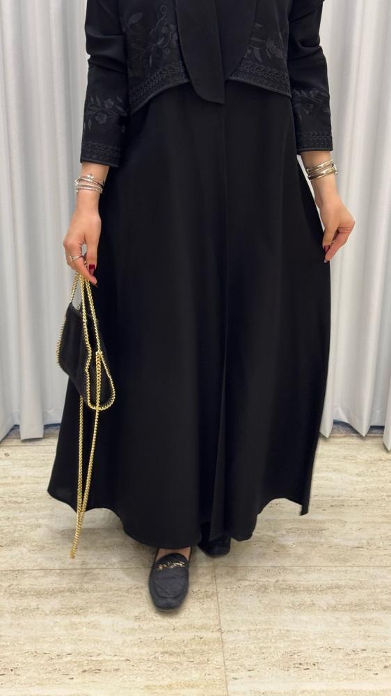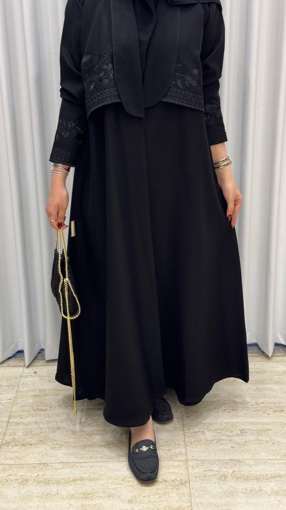عباية هندام هي خيارك، قماش كتان يضبط لك الهيبة، مع تطريز ناعم من نفس الخامة يضيف لمسة كشخة، وقصة بليزر على كلوش توازن بين الشياكة والراحة.