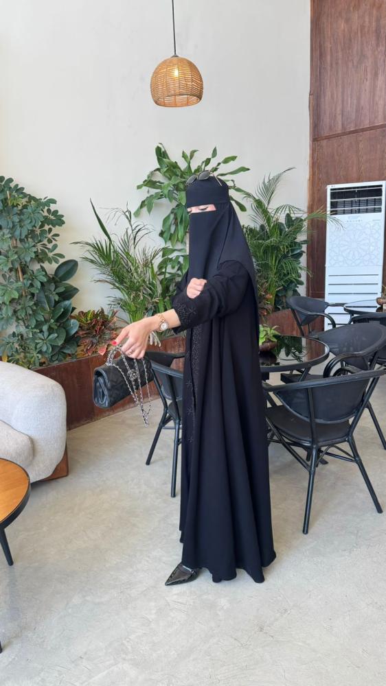 تبغين الفخامة بسعر التكلفة 💸، عباية وديان من كريب ملكي مع قصة كلوش بتكون خيارك الأول، عملية وراقية بنفس الوقت💗.